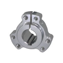 The hub pieces have been pre-drilled to accept standard 1/4″ or 5/16″ bolts; the bolt holes having a 2-1/2″ circle. In addition, the bore has been milled for 1/4″ axle key