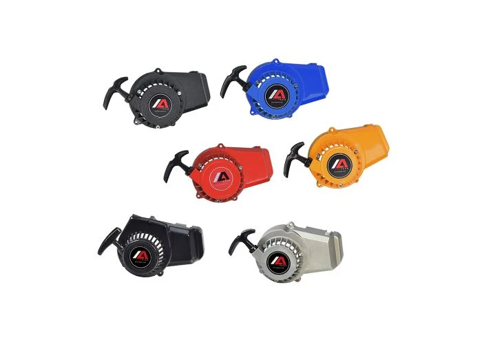 We offer the pull start in your choice of strong black plastic, or an even more durable but still lightweight metal. The metal version is available in a number of vivid and vibrant primary colors. They are functionally identical, but the choice is yours to make.