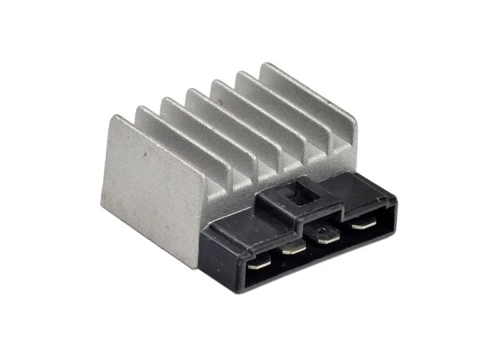This 12 volt rectifier (voltage regulator) has a 4-pin connector with all pins in a horizontal row