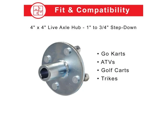 Note: Although this 1″ step-down to 3/4″ axle shaft design is common to many go-kart brands and models, it is incompatible with Yerf-dog ‘karts.