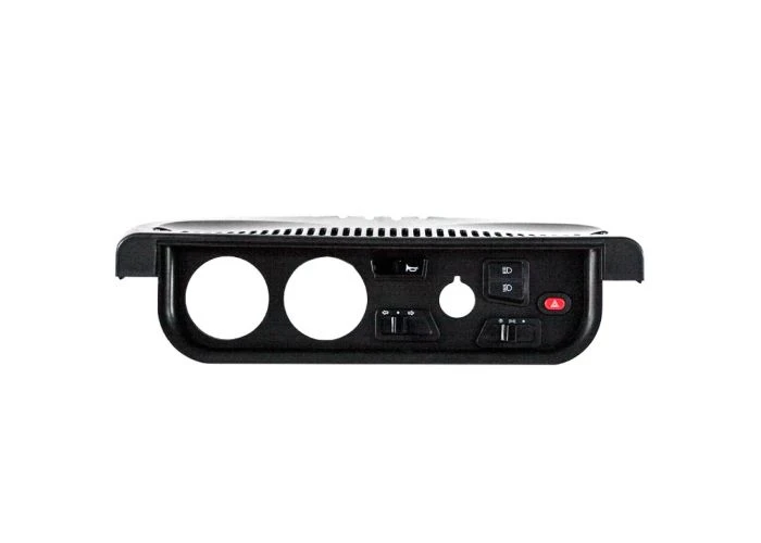 This black plastic panel uses two 2.22″ openings for the larger gauges and a smaller 0.96″ aperture for the ignition system